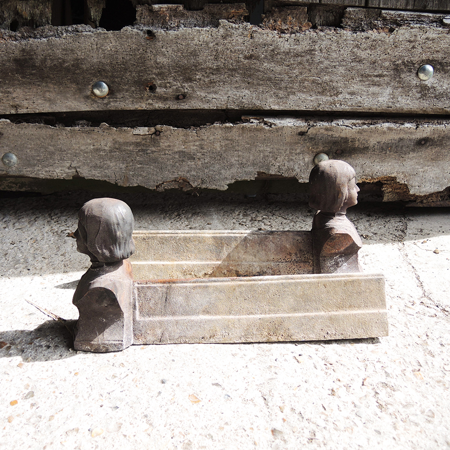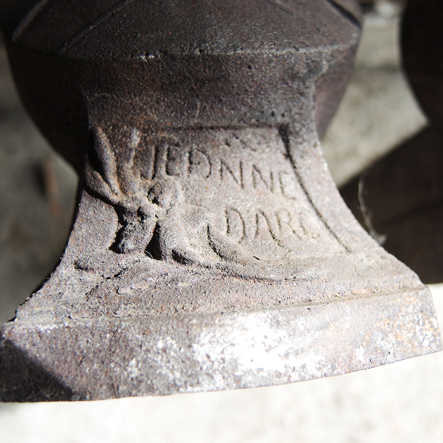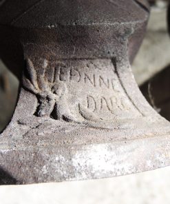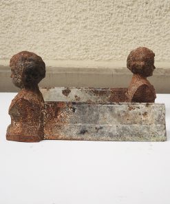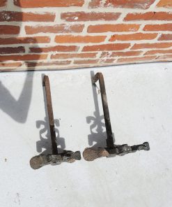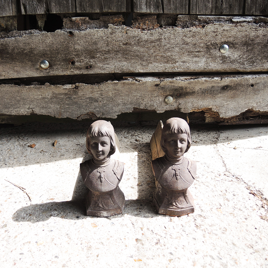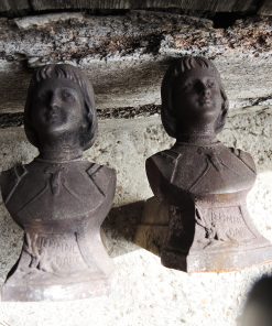 Apportez une touche d’histoire et d’élégance à votre cheminée avec cette paire rare de chenets en fonte vintage représentant Jeanne d’Arc.