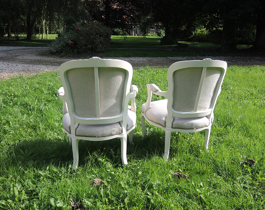 Superbe paire de fauteuils vintage de style Louis V composés de :