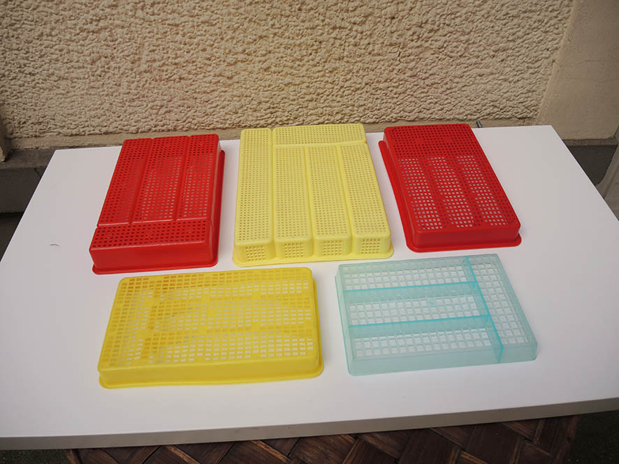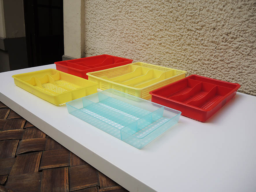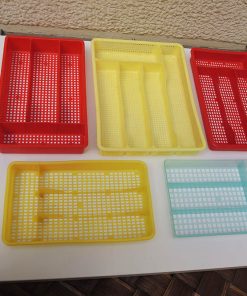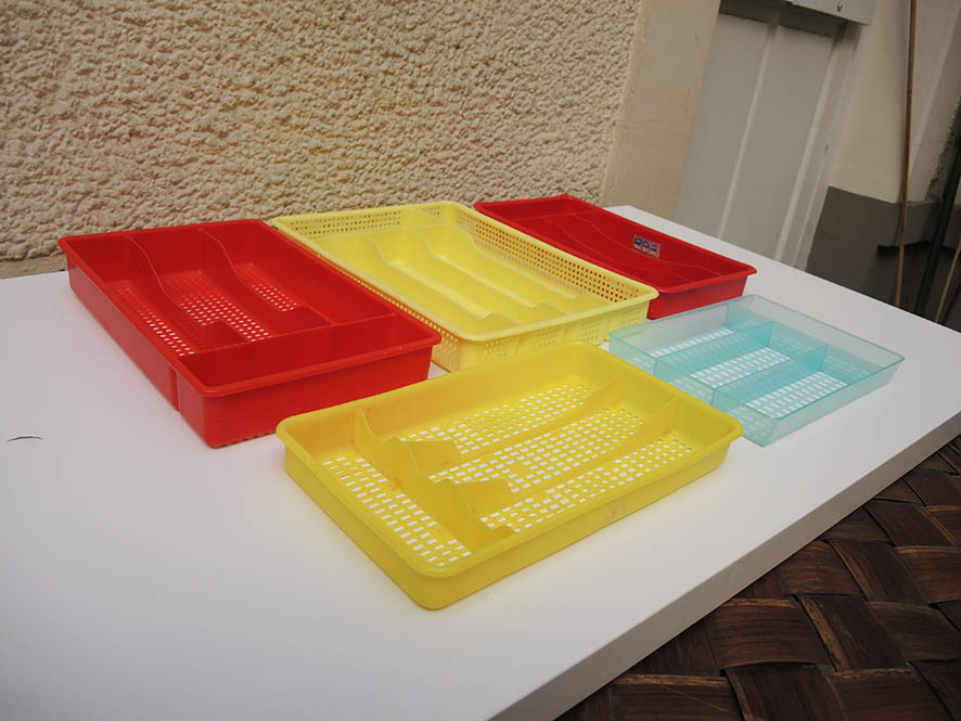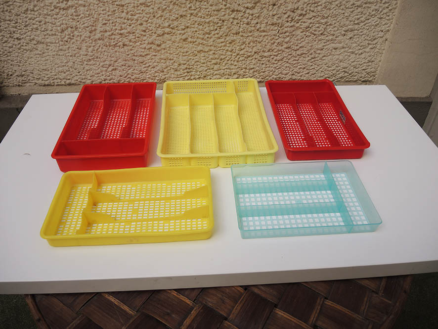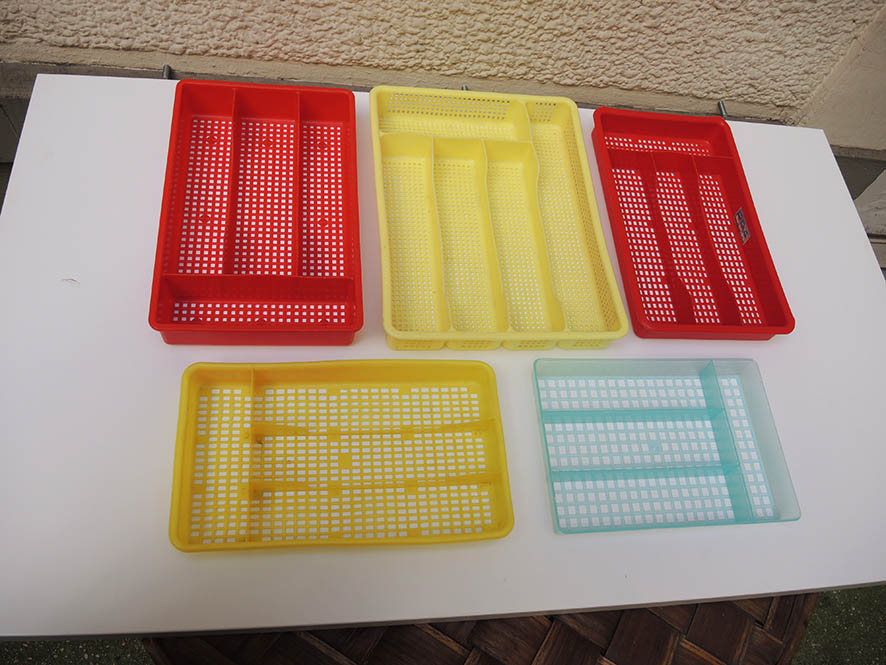 Ensemble de 5 bacs à couverts en plastique au design typique des années 50/60.
