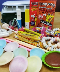 Coffret bonbon Volkswagen Combi vert en métal rempli de bonbons rétros 80