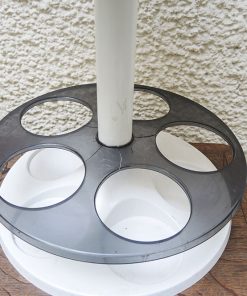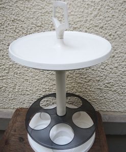 - une structure en plastique blanc avec un plateau rond équipé d’une poignée