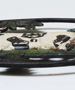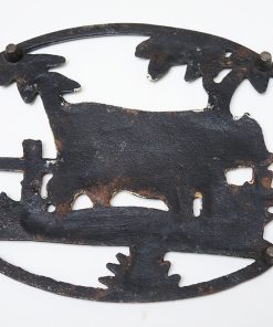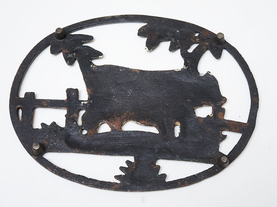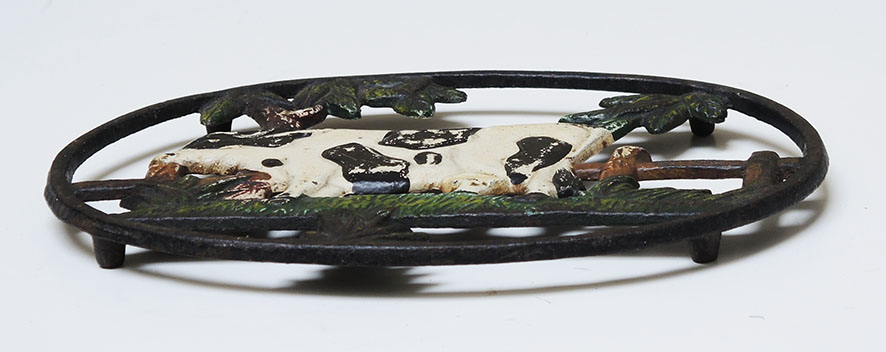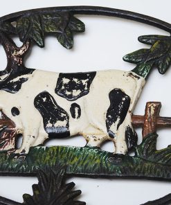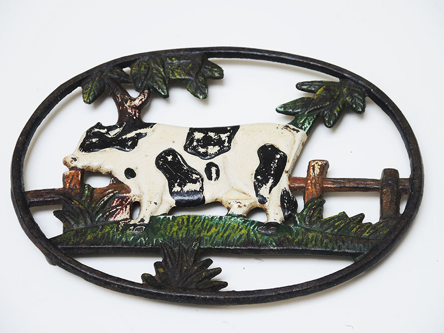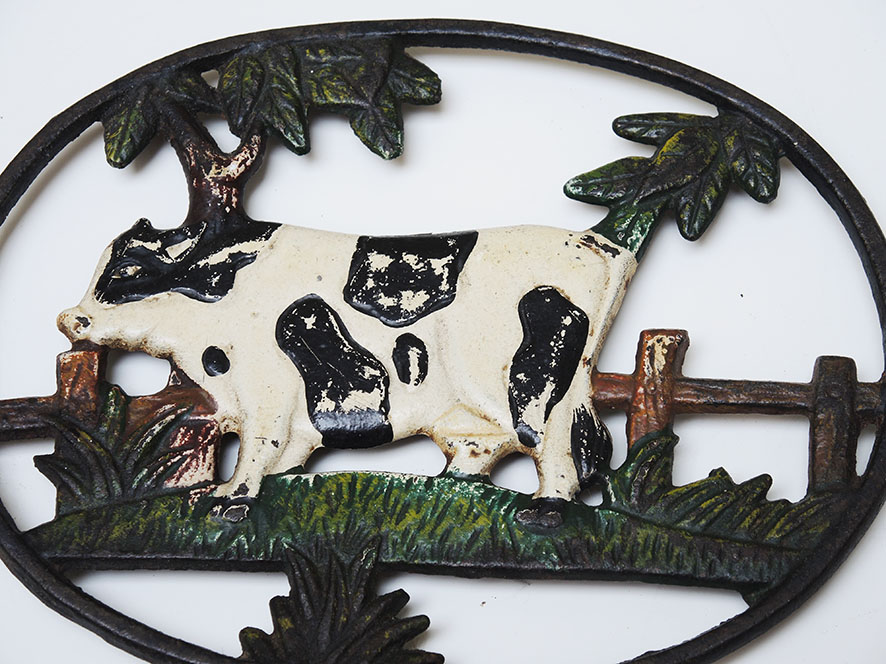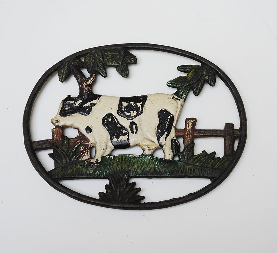 Dessous-de-plat ovale vintage en fonte à décor de vache.