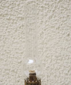 Ce superbe éclairage d’époque se compose d’un abat-jour cheminé en verre et d’un bec en laiton de type Kosmos.