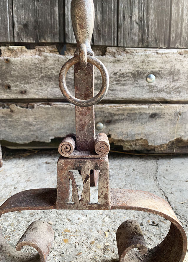 Découvrez ces élégants chenets de cheminée en fer, doté chacun d’un anneau et arborant avec distinction pour l’un la lettre « J », et pour l’autre la lettre « M »