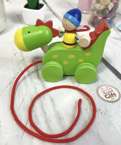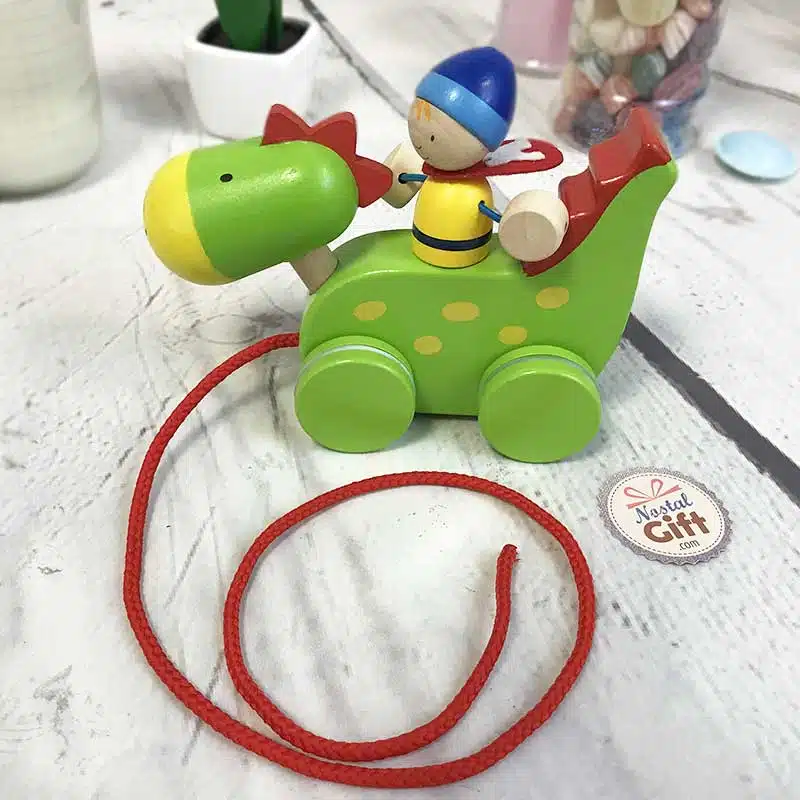 Animal en bois à tirer – Dragon et chevalier à tirer