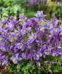 Avec ses fleurs bicolores violet et bleu ciel, l’Aquilegia ‘Earlybird Purple Blue’ apporte une touche de couleur éclatante aux massifs et bordures de printemps. Elle est également très appréciée des pollinisateurs comme les abeilles et les papillons.