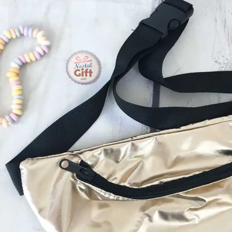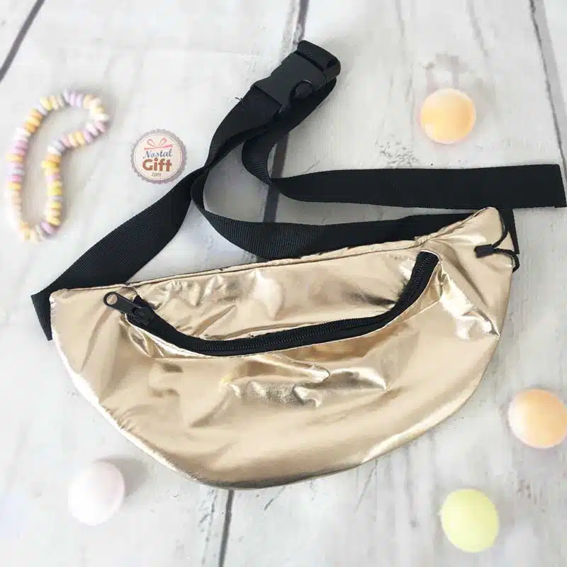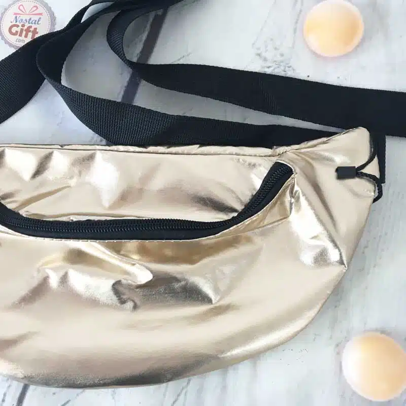 Superbe banane dorée métallisée ! Pratique et branchée elle remplacera facilement votre sac à main lors de balade ou sortie.