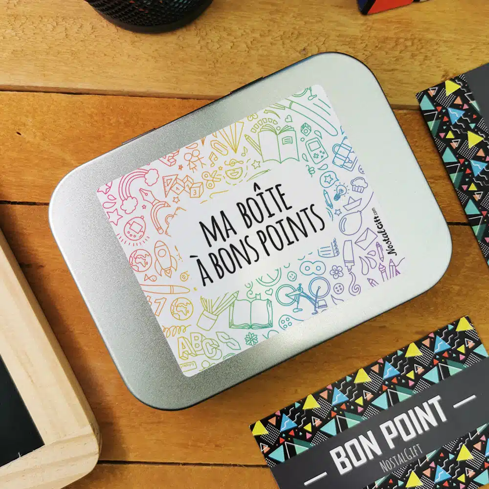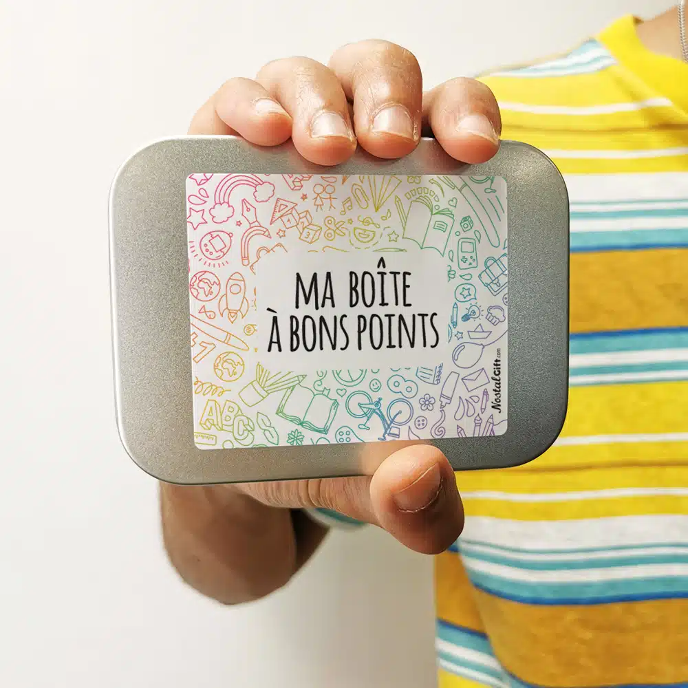 Inscription à l’avant : “Ma boîte à bons points”