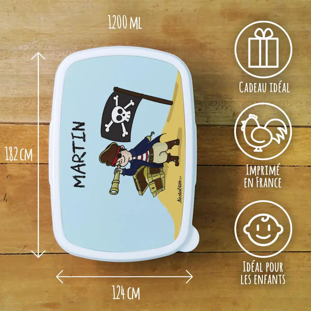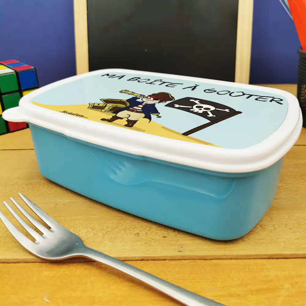 Boite à lunch / goûter Pirate – Cadeau pour garçon, pour la rentrée scolaire ou fêter un anniversaire – Couvercle métal