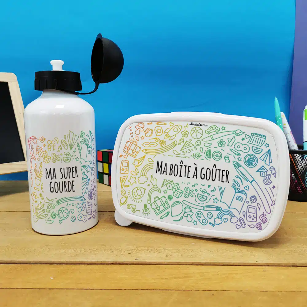 Boite goûter & gourde enfant Arc en ciel – Cadeau pour fille, pour la rentrée scolaire