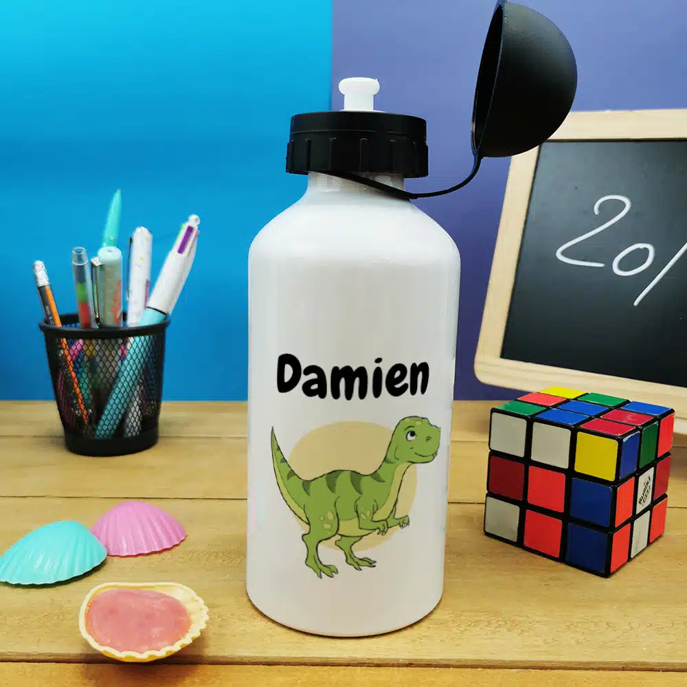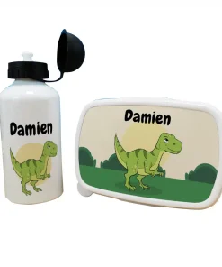 Boite goûter & gourde enfant personnalisées Dinosaure – Cadeau pour garçon, pour la rentrée scolaire ou fêter un anniversaire