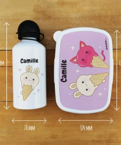 Boite goûter & gourde enfant personnalisées Glaces Kawaii – Cadeau pour fille, pour la rentrée scolaire ou fêter un anniversaire