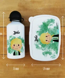 Boite goûter & gourde enfant personnalisées Petite sorcière – Cadeau pour fille, pour halloween ou la rentrée scolaire