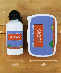 Boite goûter & gourde enfant personnalisées Retrogaming – Cadeau pour garçon, pour la rentrée scolaire ou fêter un anniversaire