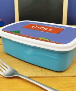 Offrez cette boite à goûter, elle est idéale en cadeau rétro pour un garçon pour la rentrée scolaire ou fêter un anniversaire de votre garçon. Sur ce produit il sera écrit ” le prénom de votre enfant ” sur l’avant grâce à votre personnalisation. En plastique et aluminium avec une fermeture hermétique cette boîte à goûter est parfaite pour le sac de sport ou le cartable de votre enfant.