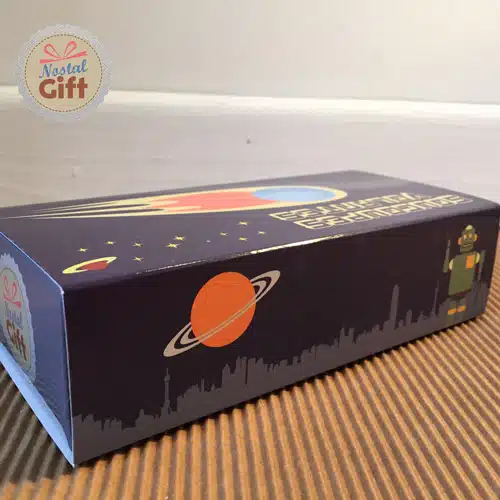 – Emballage : Livré dans une boîte coulissante en carton au graphisme spatiale.