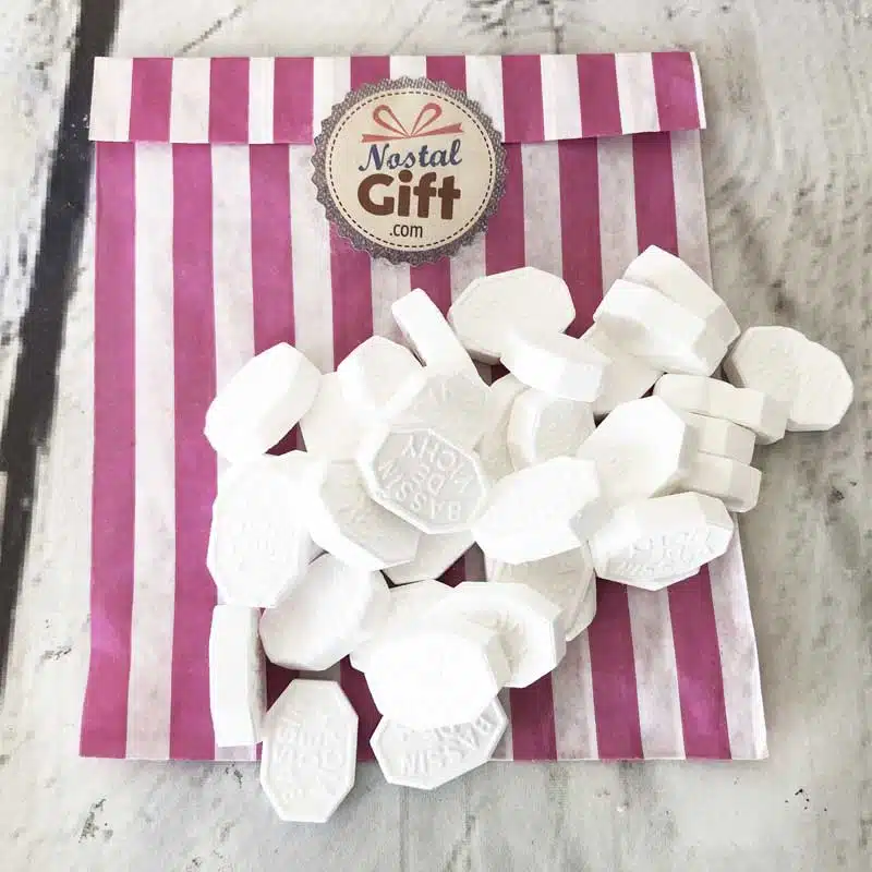 – Emballage : Livré dans un sachet bonbon rétro (avec les autres bonbons de votre commande).