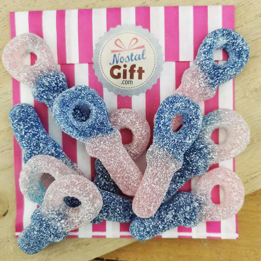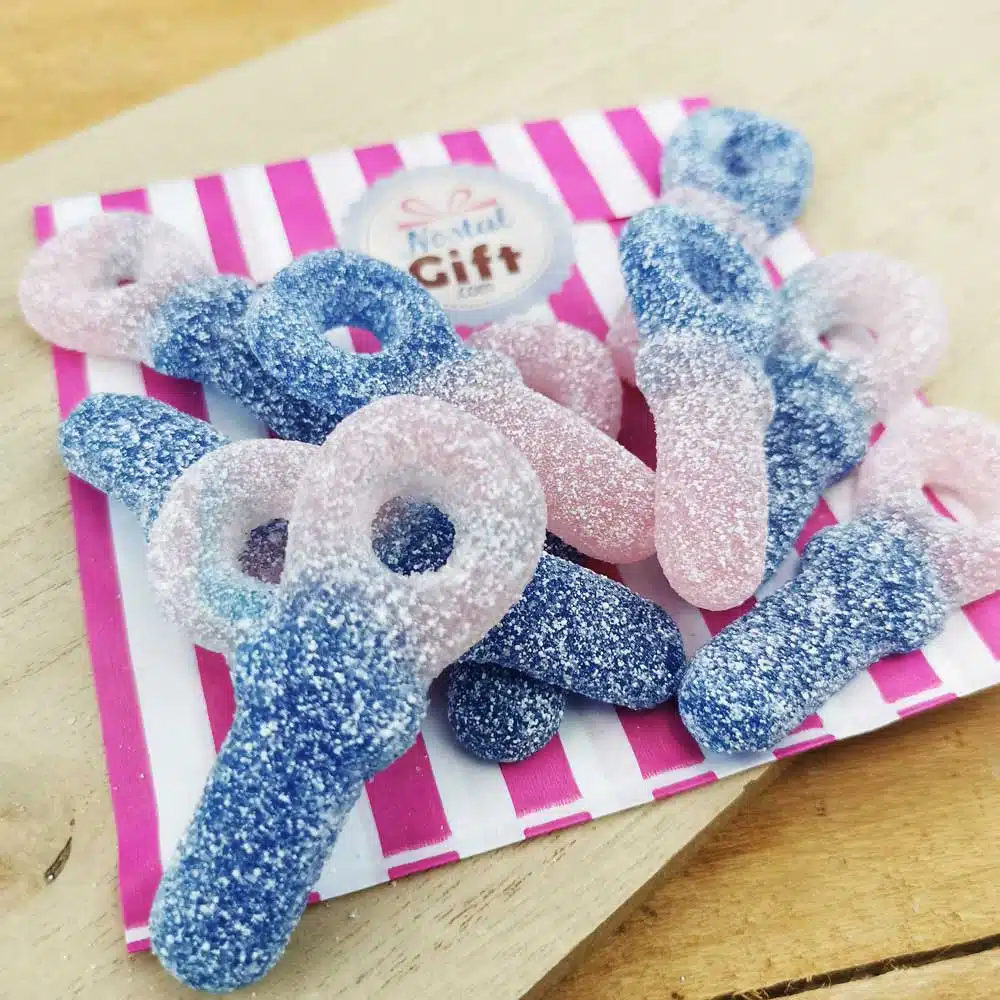 Bonbon tétine acidulée rose et bleu – saveur bubble gum x 20
