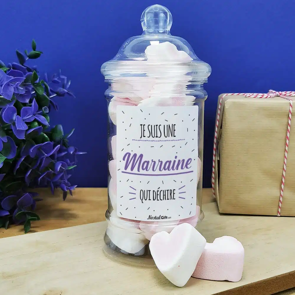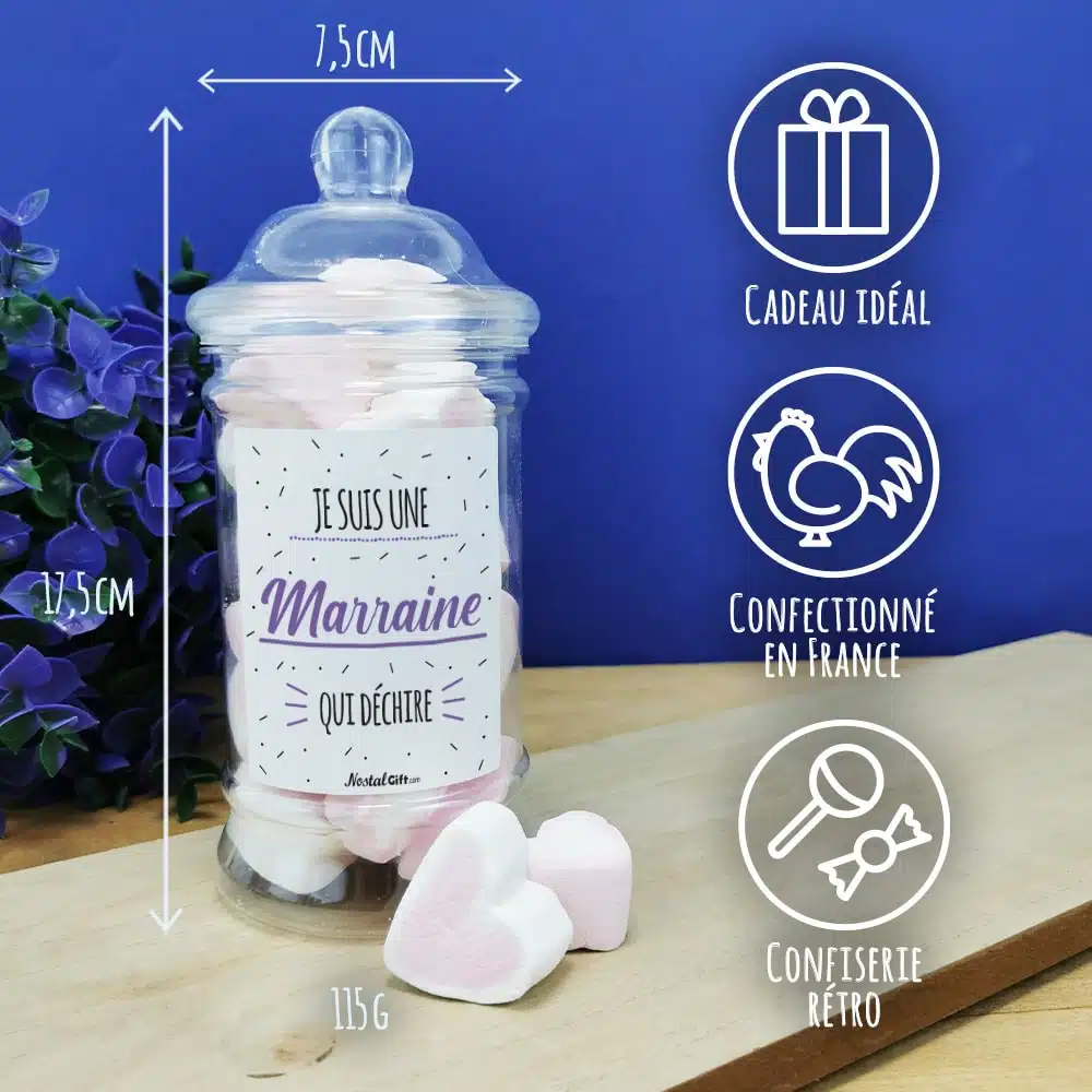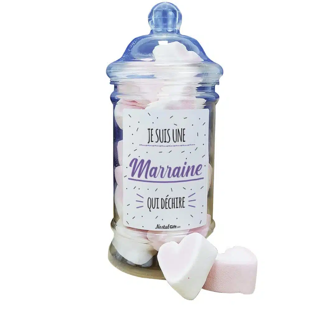 Bonbonnière coeurs guimauve Marraine Qui Déchire – 15 Petits cœurs guimauve