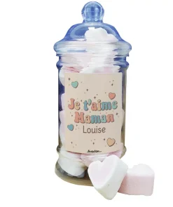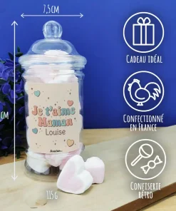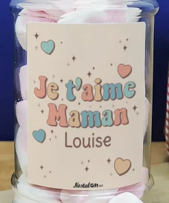 Bonbonnière coeurs guimauve “Je t’aime maman”- 15 Coeurs guimauve – cadeau personnalisé