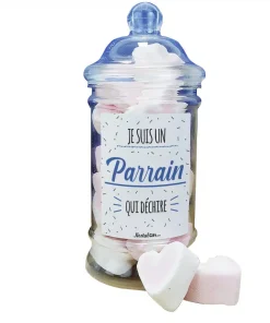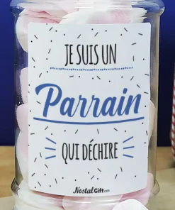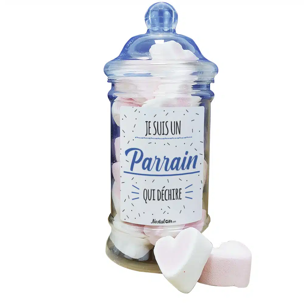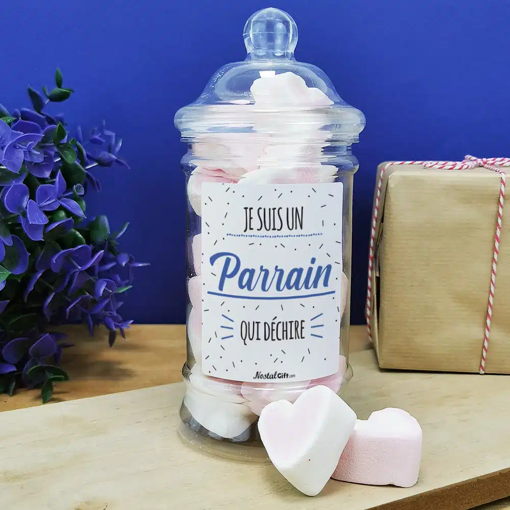 Bonbonnière coeurs guimauve Parrain qui déchire – 15 Petits cœurs guimauve – cadeau