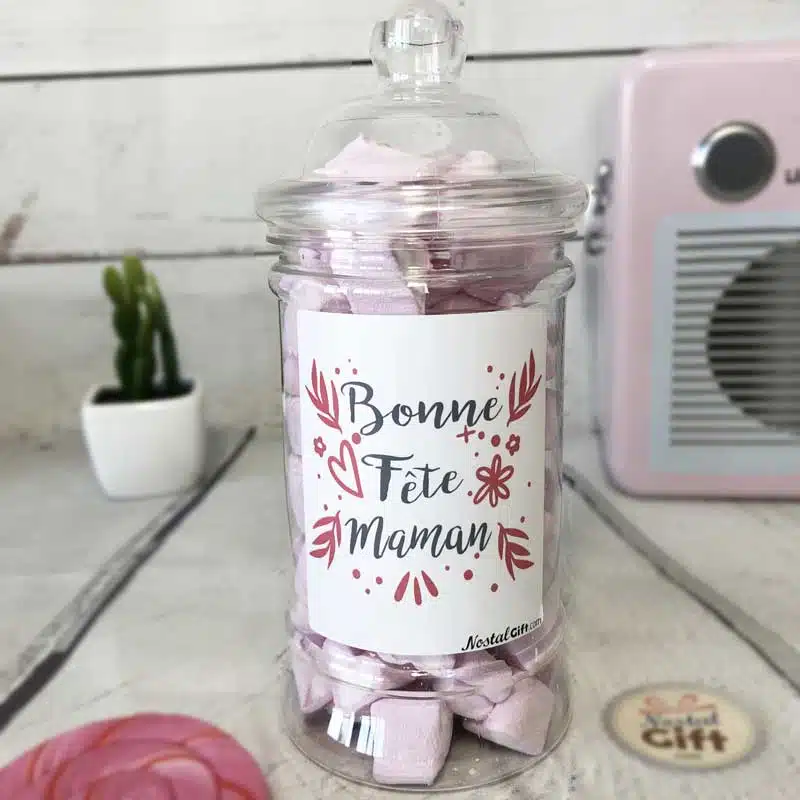 Bonbonnière maman – “Bonne fête maman” – 15 cœurs guimauve