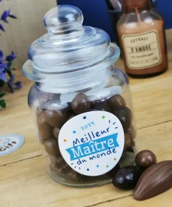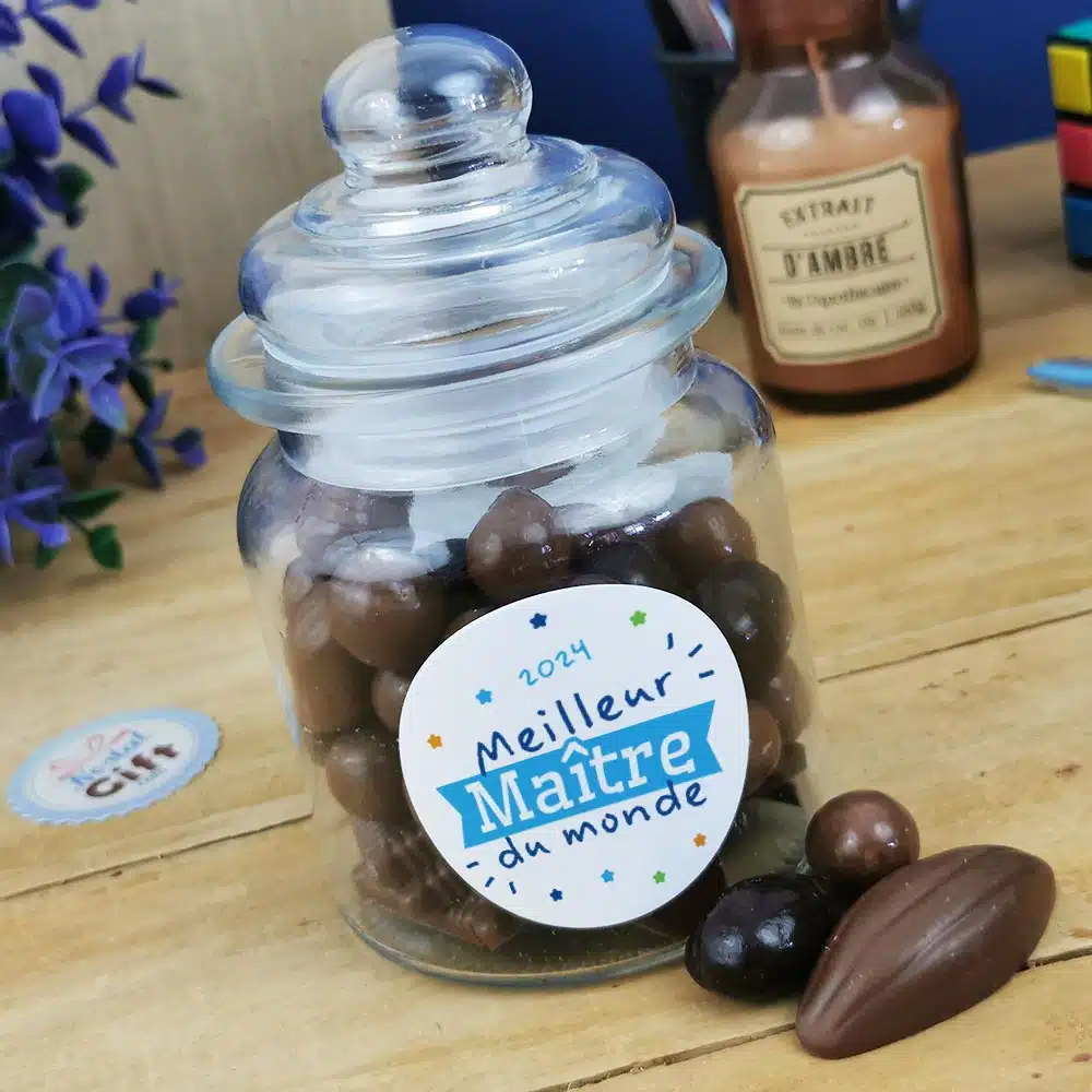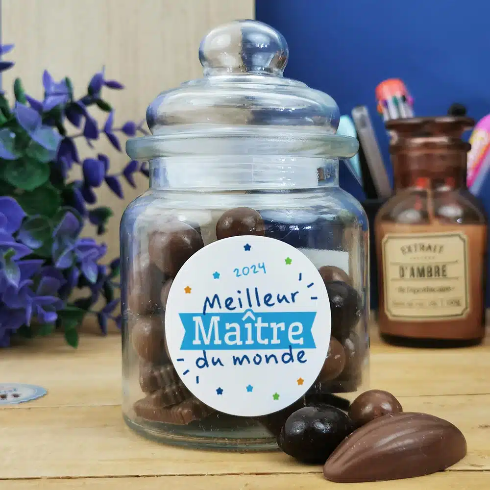 Bonbonnière “Meilleur Maître du monde” rempli de chocolat français (Maison Guinguet) – Cadeau Maître (Made in France)
