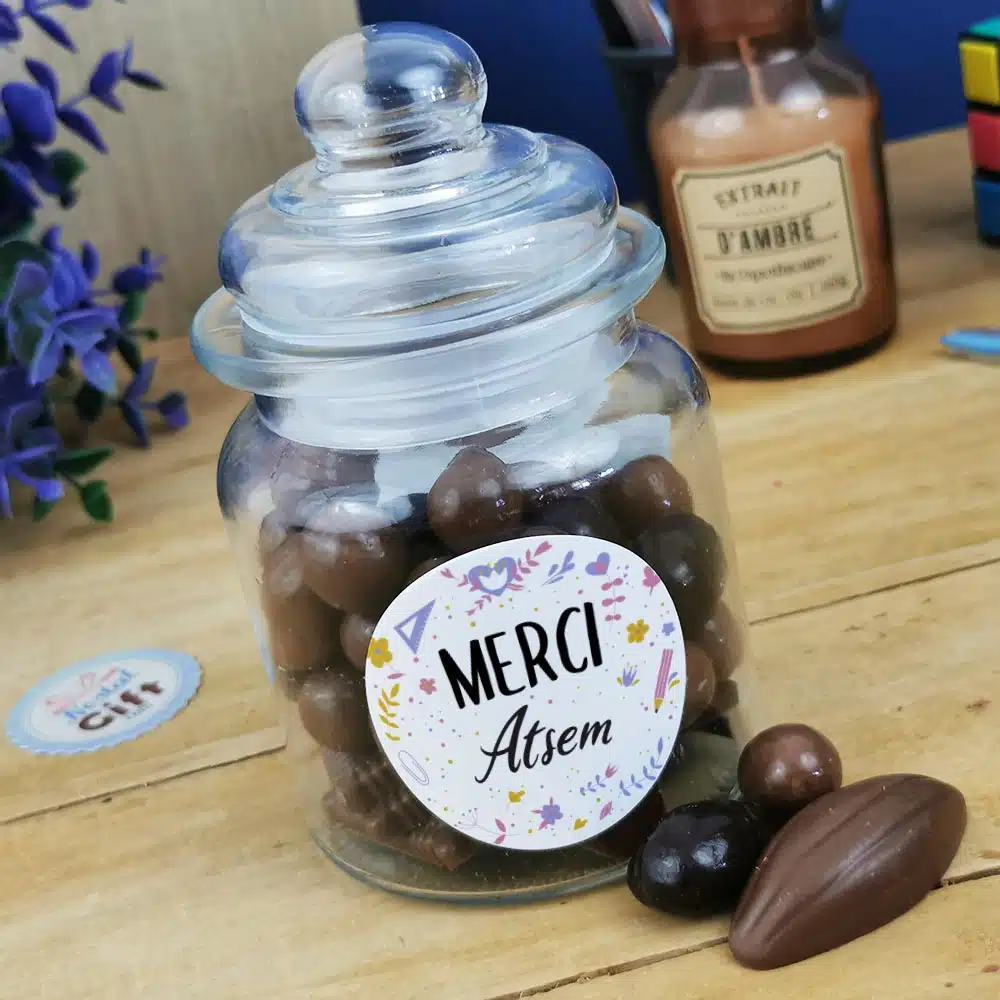 Bonbonnière “Merci ATSEM” rempli de chocolat français (Maison Guinguet) – Cadeau ATSEM (Made in France)