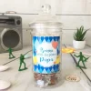 - Taille de la bonbonnière : 18 cm de haut, 7,5cm de diamètre