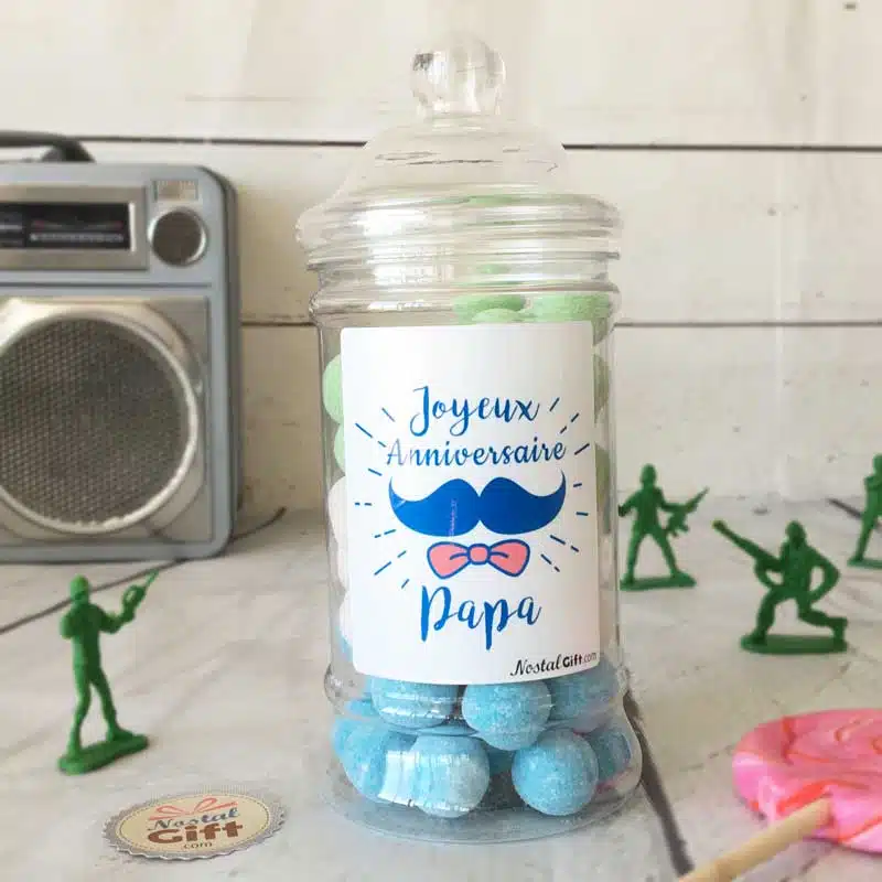 Bonbonnière Papa Moustache – Kysmache 300g – “Joyeux anniversaire Papa”