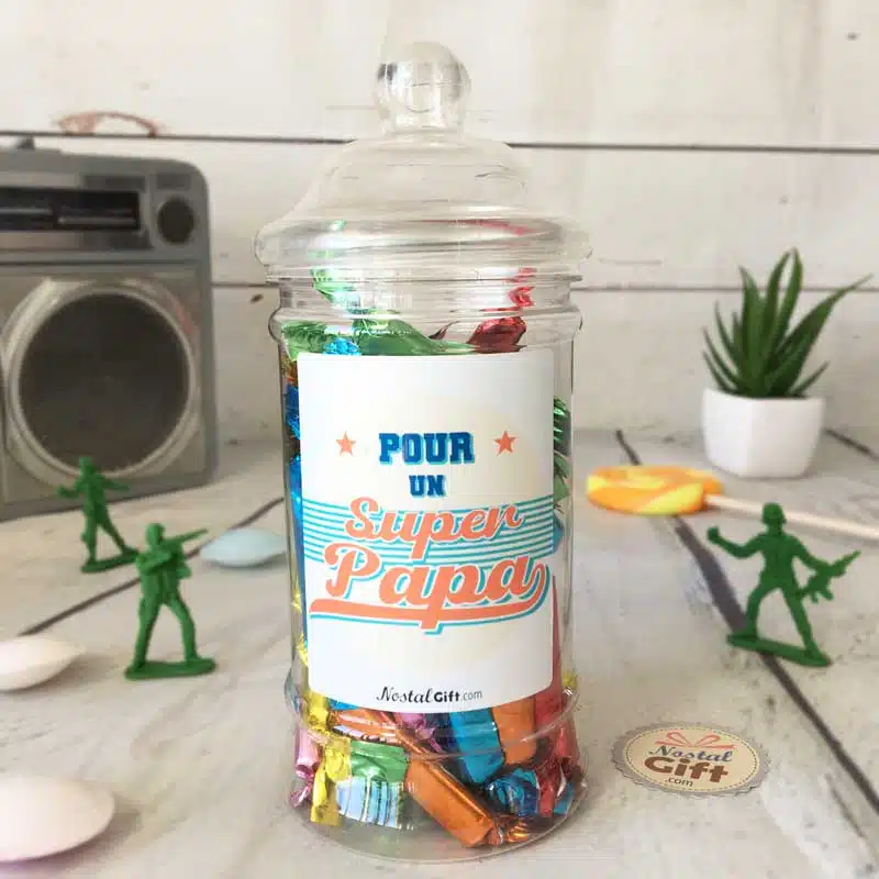 Bonbonnière papa oldschool – “Pour un super papa” – Sucre d’orge 200g
