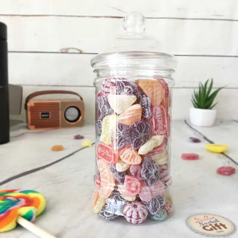 Contient : 300 grammes de bonbons mix dont berlingots fruits, bonbons coquelicots, bonbons violettes, pastilles à la menthe, quartiers d’oranges et citrons…