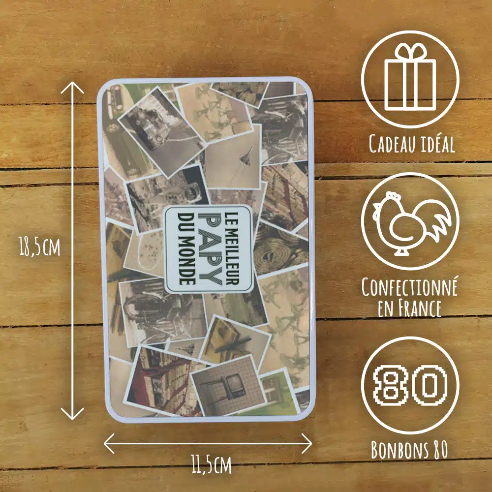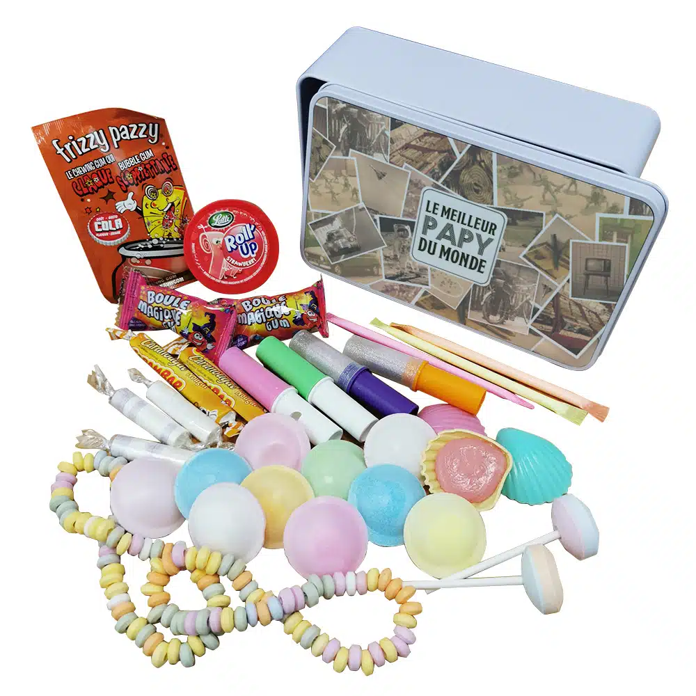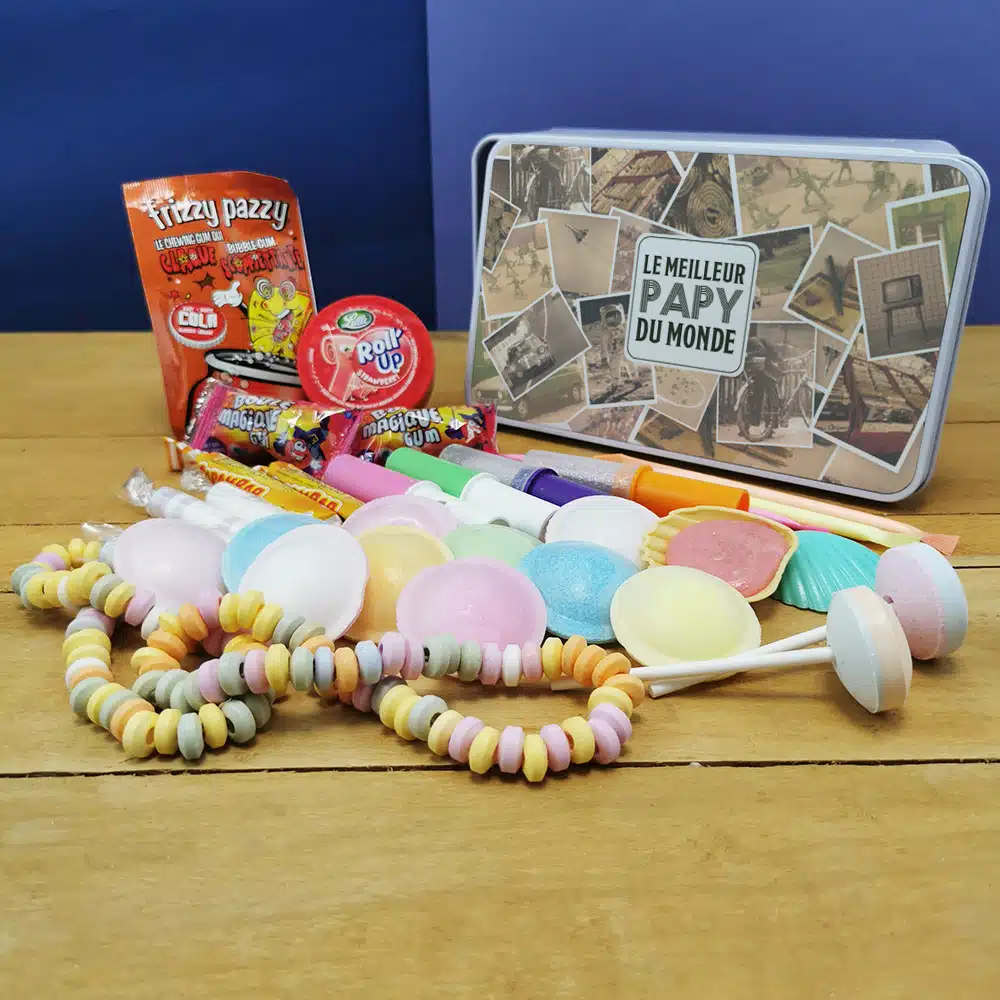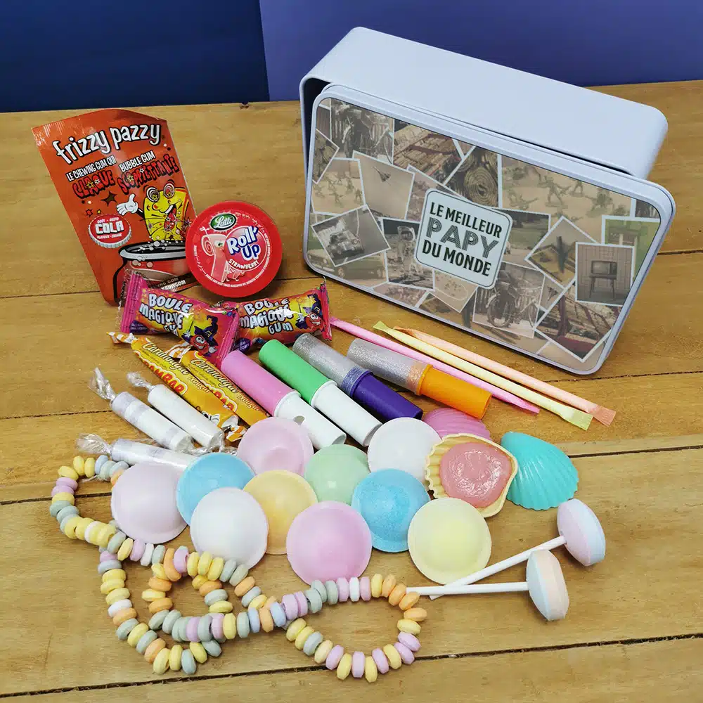 Bonbons des années 80 “Le meilleur papy du monde” (Boîte en metal)
