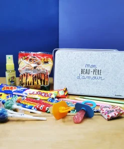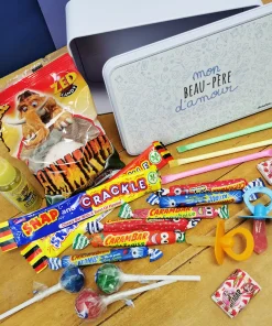 Le coffret cadeau bonbons des années 90 “Mon beau-père d’amour” contient :