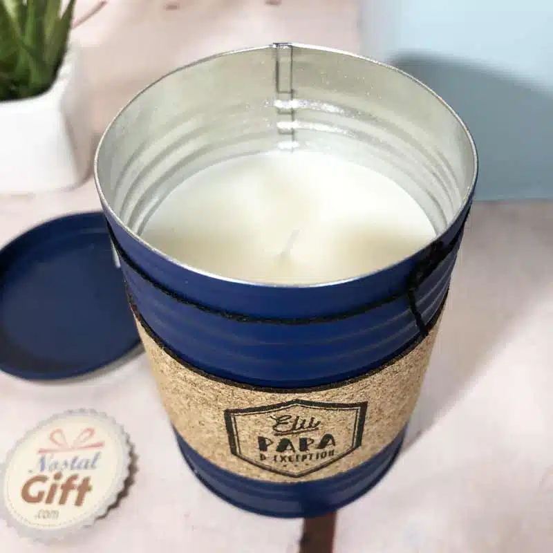 Bougie boîte en métal “Élu Papa d’exception” (bleu foncé)