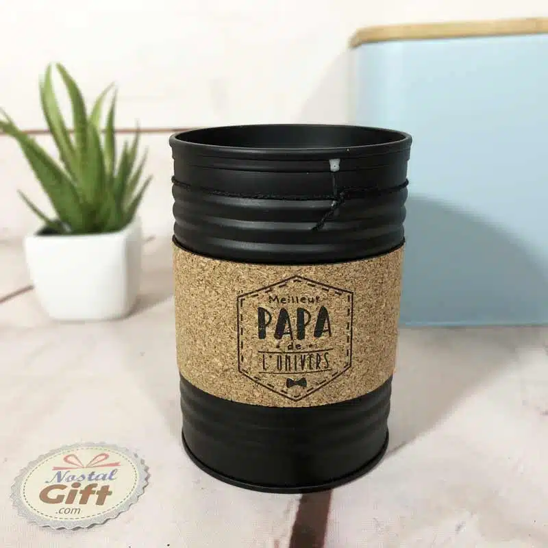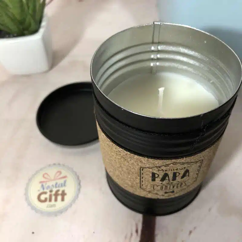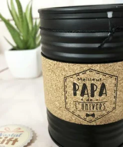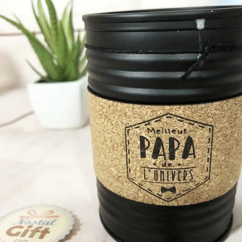 Bougie boîte en métal “Meilleur Papa de l’univers” (noir) pour la fête des pères.