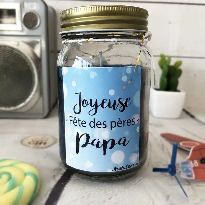Bougie Jar “Joyeuse Fête des pères Papa” – cadeau fête des pères