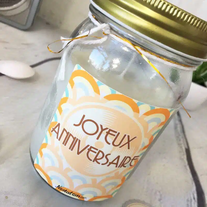 Vous cherchez un cadeau d’anniversaire ? Offrez cette bougie Jar spéciale « Joyeux anniversaire » Le destinataire sera conquis grace à son design délicieusement retro inspiré des années 60.