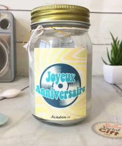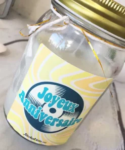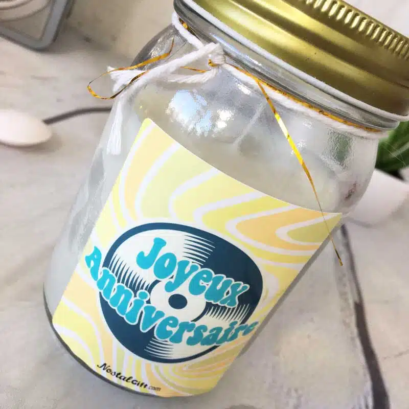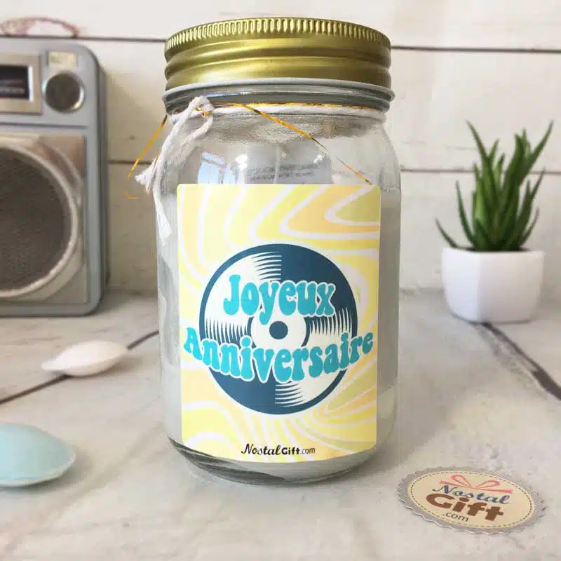 Vous cherchez un cadeau d’anniversaire ? Offrez cette bougie Jar spéciale « Joyeux anniversaire » Le destinataire sera conquis grace à son design vintage inspiration années 70.