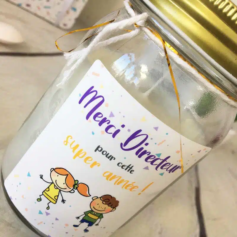 Bougie Jar “Merci Directeur pour cette super année !” – cadeau Directeur école – Dessins d’enfants