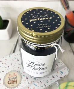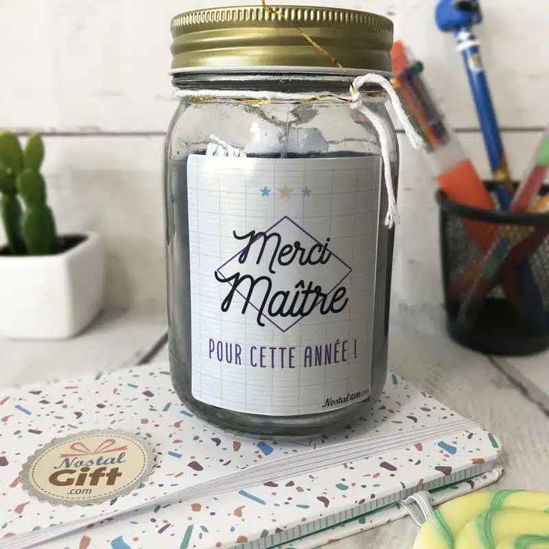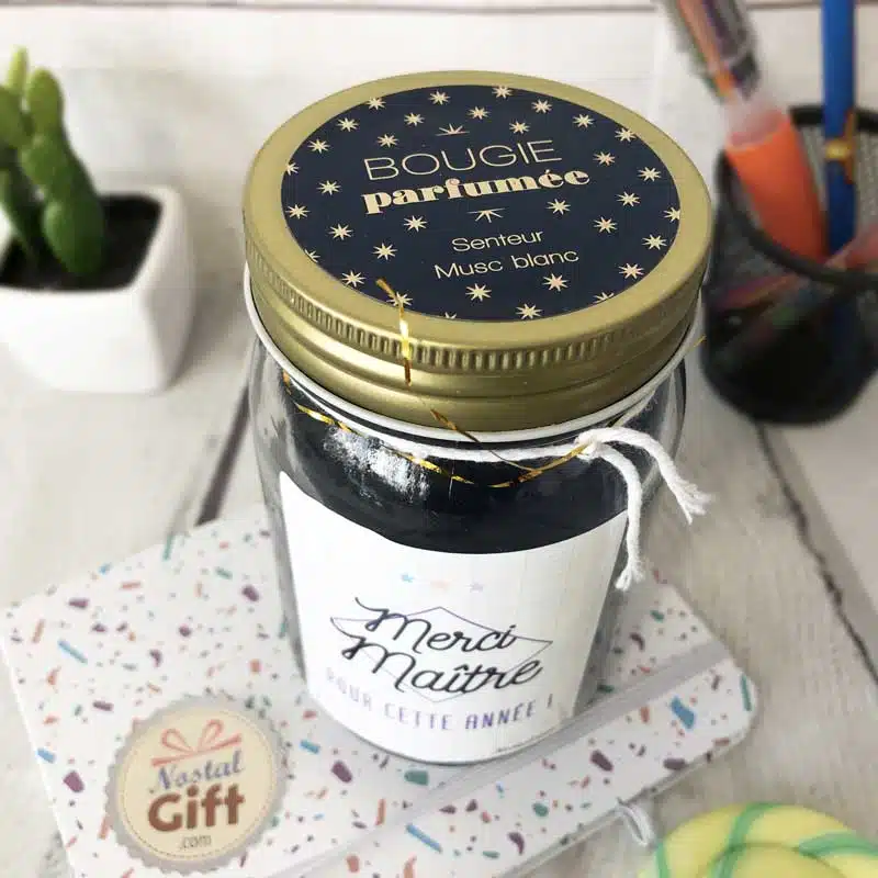 Offrez cette magnifique bougie jar au maître de votre enfant ! Il sera conquis par le message et par la senteur florale et printanière de la bougie.