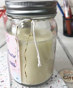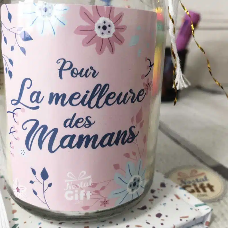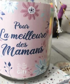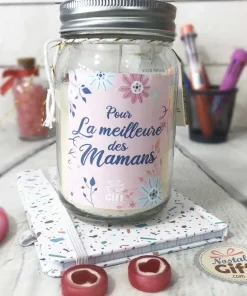 Offrez cette magnifique bougie jar à votre maman pour lui témoigner votre amour ! Elle sera conquise par le message et par la senteur florale et printanière de la bougie.