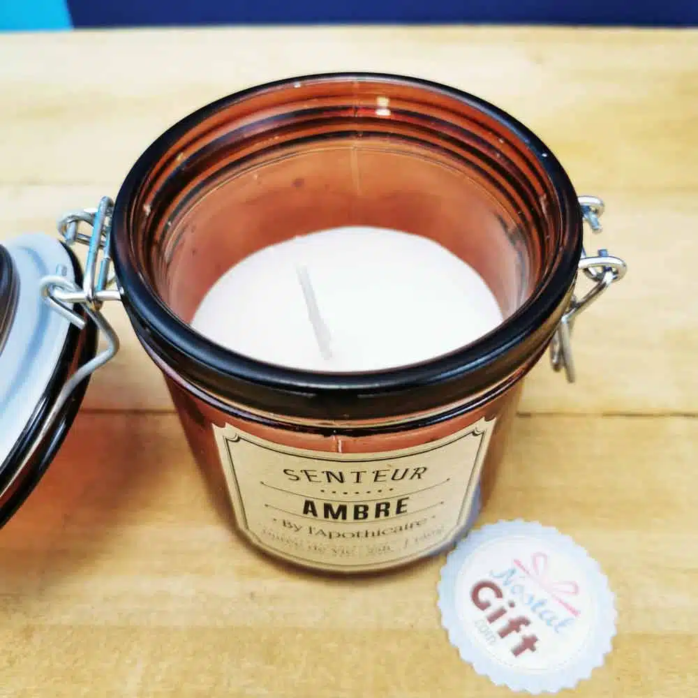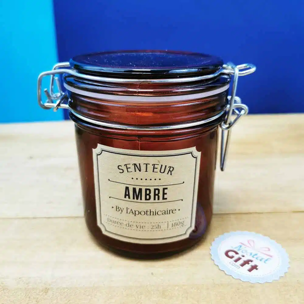 Bougie parfumée bocal apothicaire – Senteur ambre