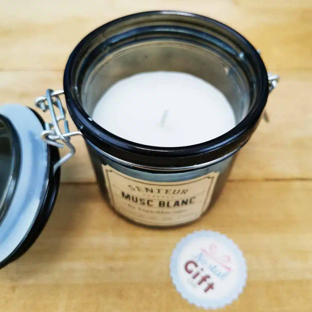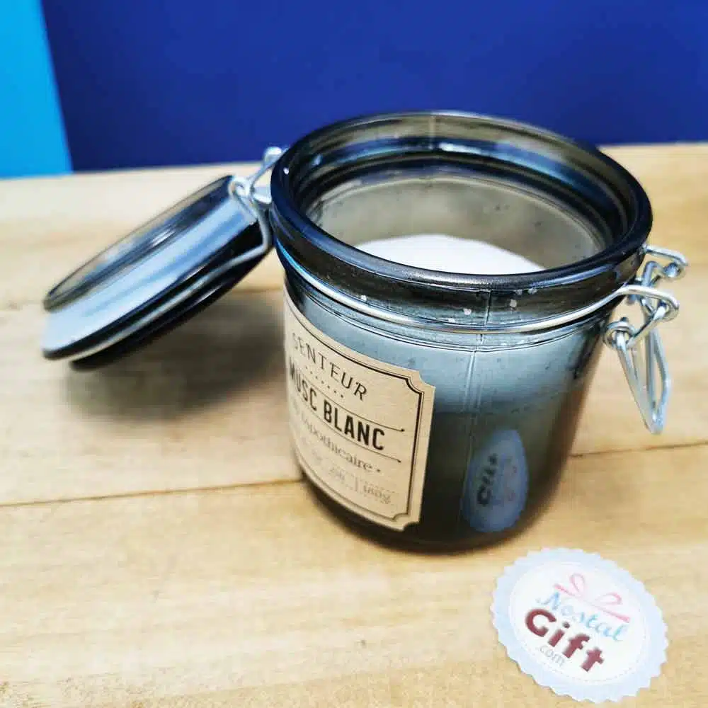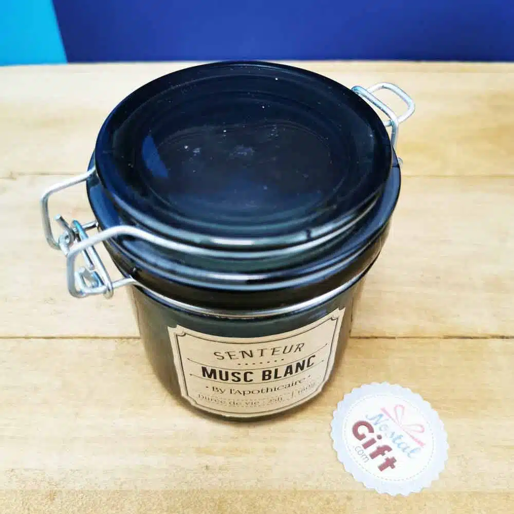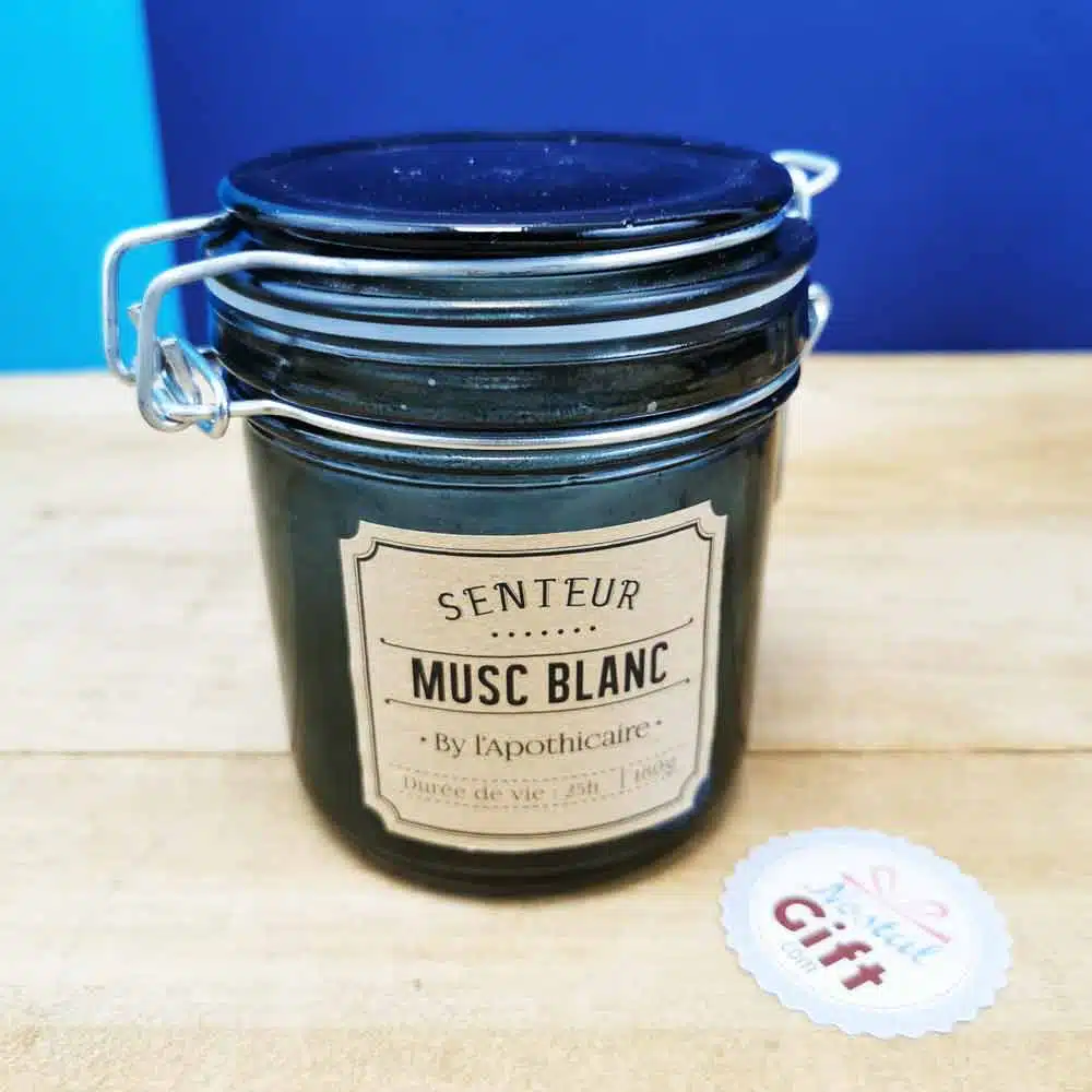 Bougie parfumée bocal apothicaire – Senteur Musc blanc