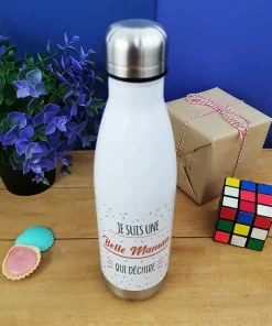 Offrez un cadeau rétro à votre belle mère avec notre bouteille isotherme. Sur cette bouteille en inox, il est écrit “Je suis une belle maman qui déchire” sur l’avant.
