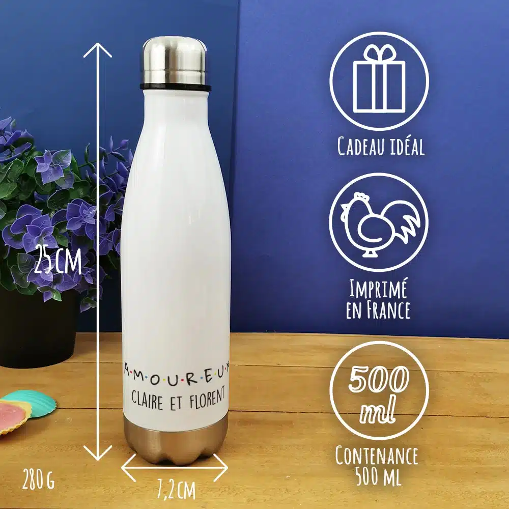 L’impression est réalisée dans notre atelier en France pour une qualité irréprochable. N’hésitez pas à découvrir ici toute notre collection de bouteilles isothermes.- C’est un cadeau pour copine ou copain qui sera parfait pour la Saint Valentin