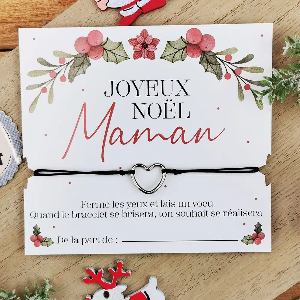 Bracelet à souhait coeur « Joyeux Noël Maman »