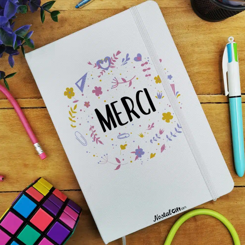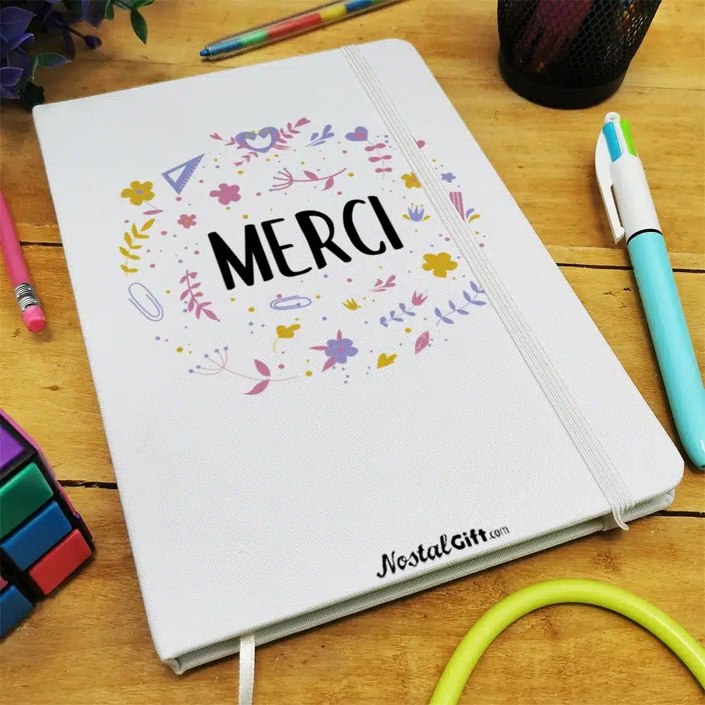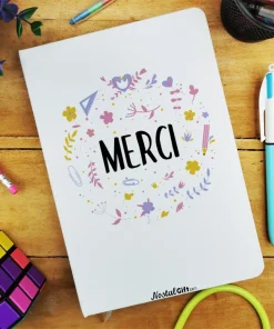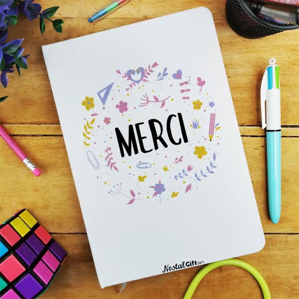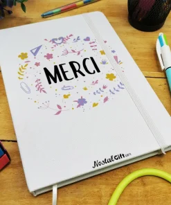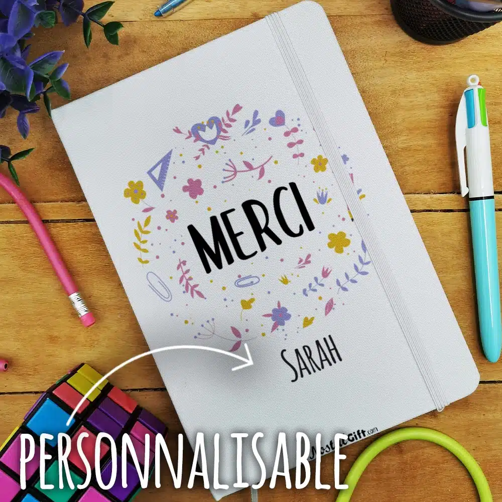 Offrez un cadeau original pour la fin de l’année scolaire avec notre carnet personnalisé de la collection “Merci ” florale.