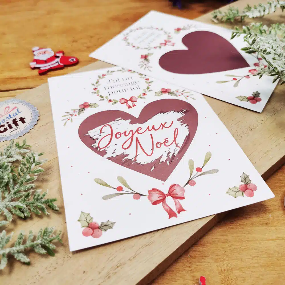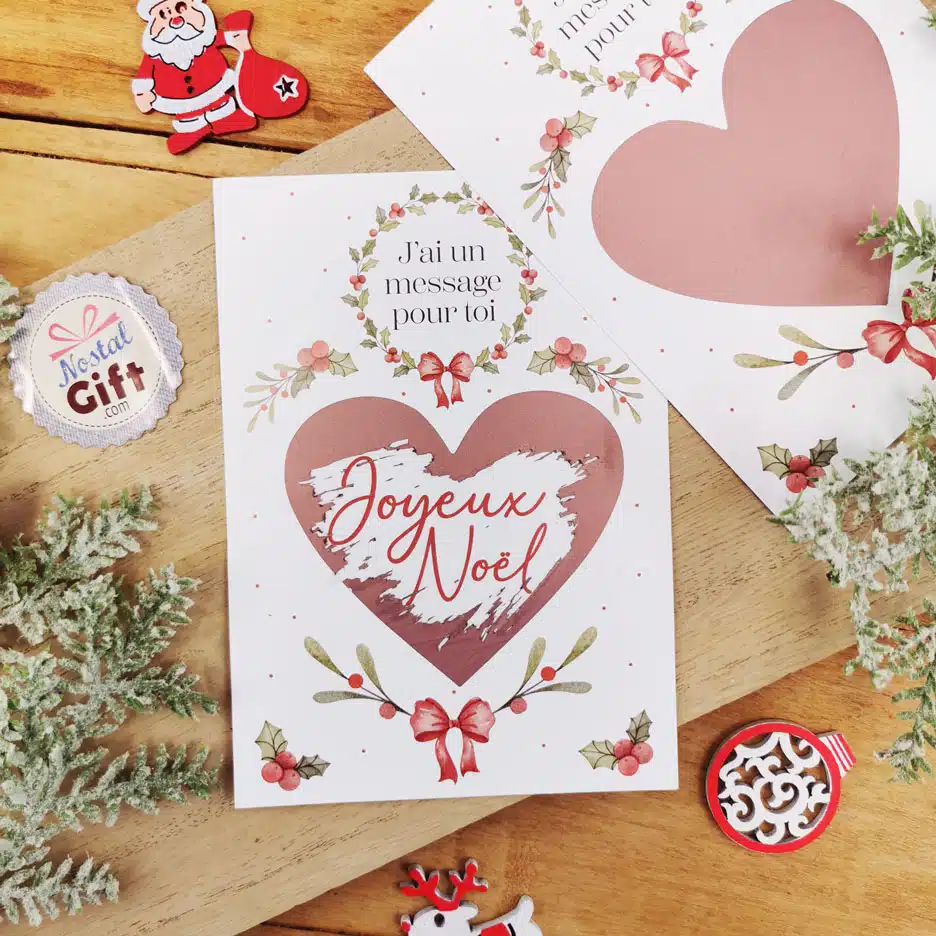 Inscription sous le coeur à gratter : “Joyeux Noël”