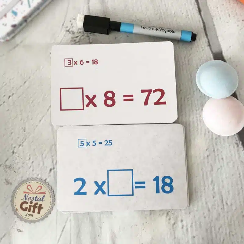Cartes éducatives effaçable “Spéciales Calculs – Multiplications ” x36 (+1 feutre effaçable)
